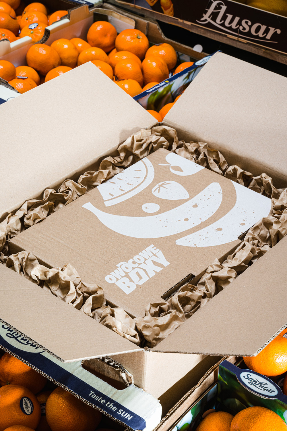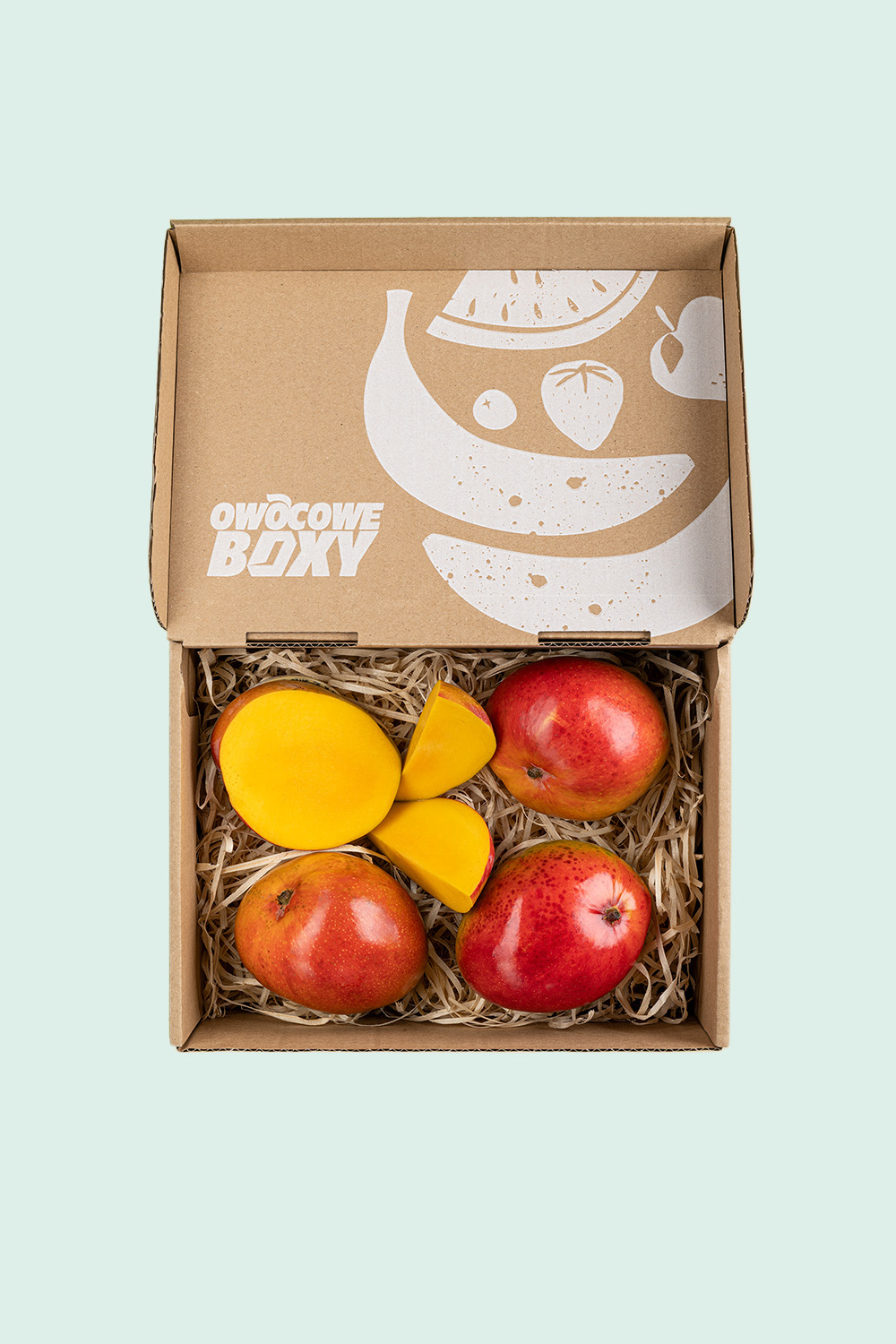 Każdy owoc zabezpieczamy indywidualną „koszulką”, a wolne przestrzenie wypełniamy ekologiczną wełną drzewną. Całe zamówienie pakujemy najpierw w karton produktowy, a następnie w solidny karton wysyłkowy z dodatkowymi zabezpieczeniami. Dzięki temu owoce docierają w idealnym stanie.